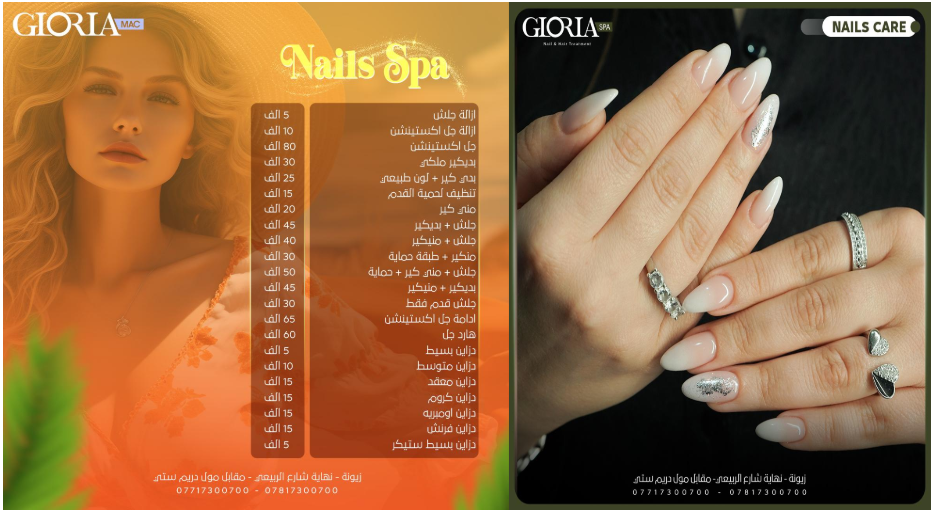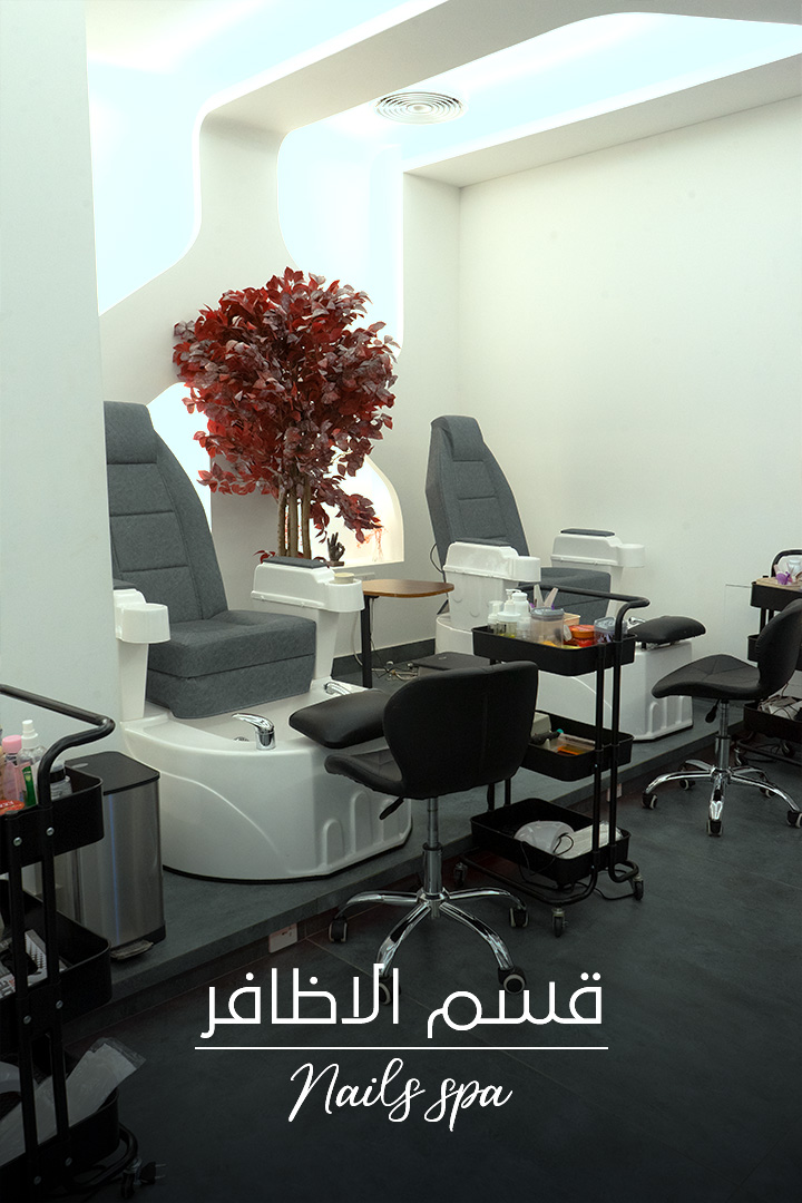 في قسم الأظافر یوجد كادر أجنبي متخصص یقدم بأسلوبه الخاص الممزوج بالفن أفضل صورة عن العنایة بالأظافر وزیادة أناقتھا
