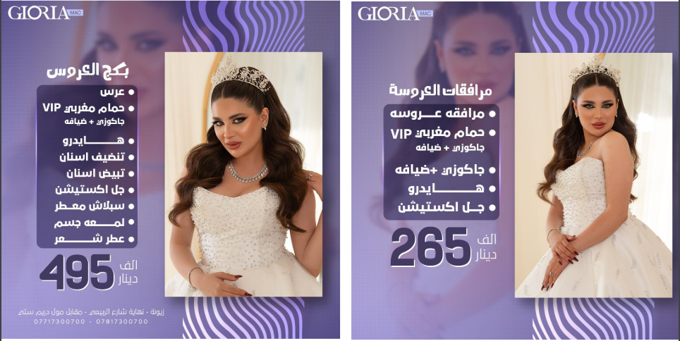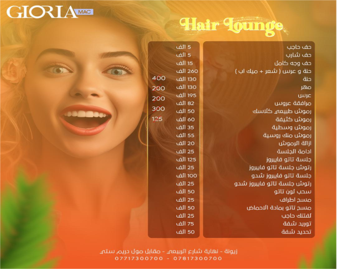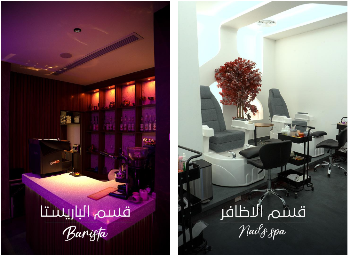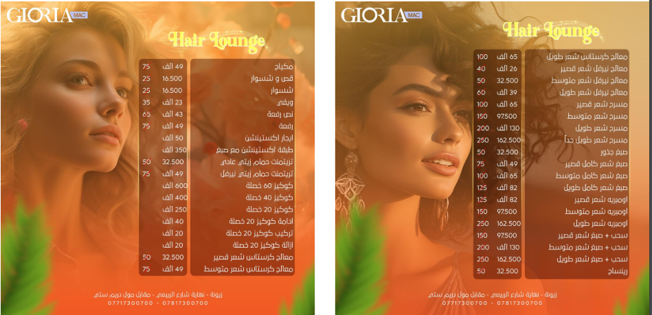 في قسم الصالون نوفر الكوادر الإحترافیة الأكثر مھارة المختصة بالمیك اب والعنایة بالشعر، یقدم خدماته لتكتمل إطلالة المرأة العراقیة المحجبة وغیر المحجبة لتتمیز في كل مناسباتها ومشاویرها
